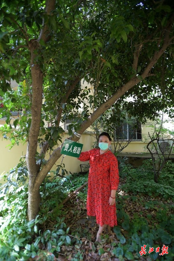 解琳红将家中的两棵桂花树分别命名为“勤(秦)劳勇敢”“贵人相助” 记者史伟 摄