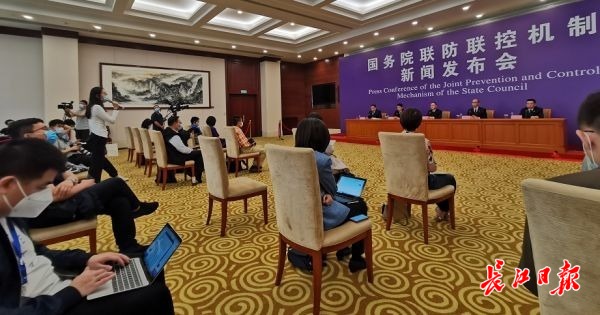 5月4日国务院联防联控机制新闻发布会现场 驻京记者柯立 摄