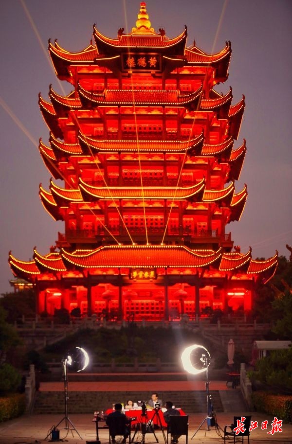 活动主会场设在武汉黄鹤楼下,19时30分,著名相声演员陆鸣、长江日报新闻主播占思柳、“字绘中国”创始人徐郑冰共同主持,现场带领大家品味湖北美食、赏黄鹤楼文创产品,一起见证湖北复苏。