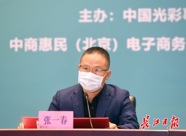 中商惠民董事长张一春现场发起《助力武汉经济复苏倡议书》。记者周超 摄