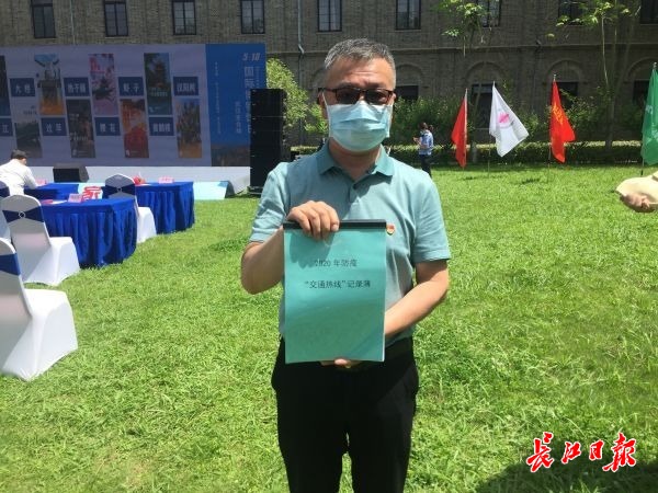 捐赠战疫物证者在展示物证。记者万建辉 摄
