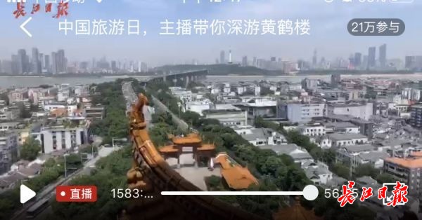 本次直播为武昌区文化和旅游局、长江日报文旅研究院联合推出“古城悠悠 云游武昌”行动的第一站。一小时直播中,主播带领网友深度探寻黄鹤楼公园不一样的风景。