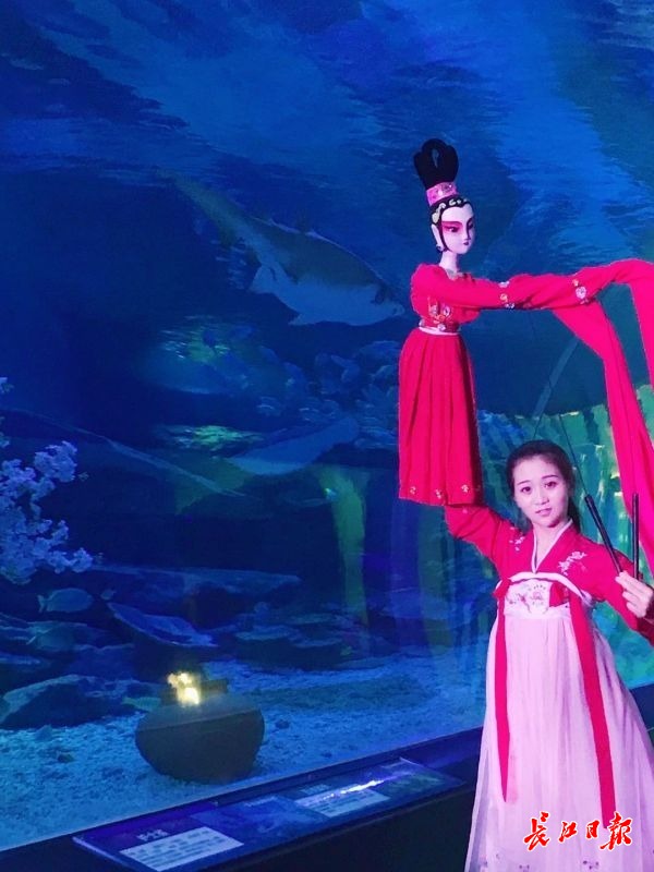 陈金玉手执小木偶在海底隧道表演《长袖》 记者许魏巍 摄