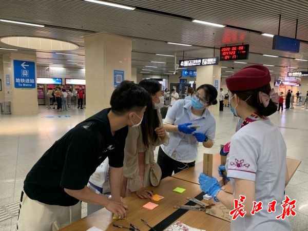长江日报-长江网6月8日讯 8日起,武汉高校毕业生分批回汉返校,三大火车站的地铁站也做好了相关迎接工作,让学子感受武汉的热情。