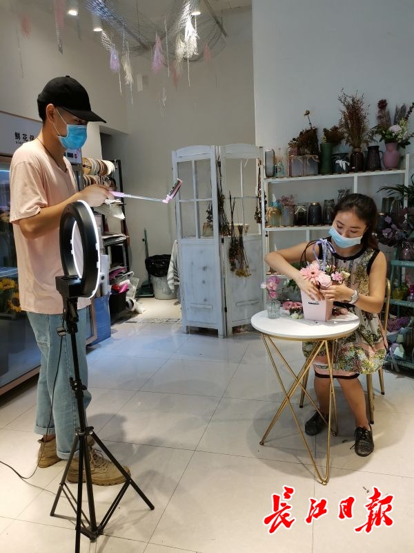 29岁的花店老板唐婷现在是社区小有名气的花艺主播,几天前在线做了一次花艺展示后,她所在的初诺花艺店生意也逐步回暖。