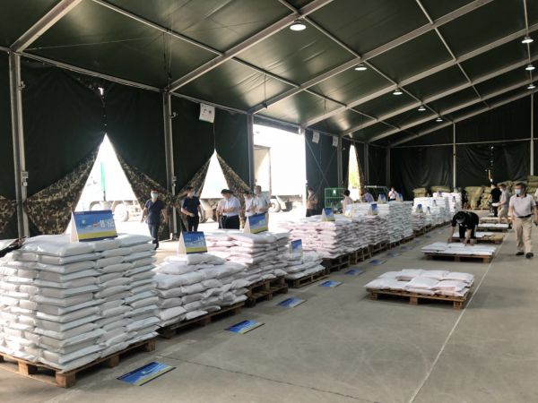 馈赠的粮油堆满仓库