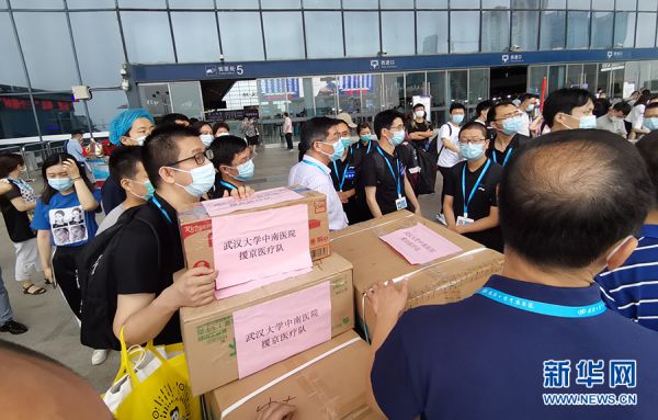 6月20日,6家武汉市大型三甲医院的医疗团队70余人统一搭乘列车驰援北京各大医院。新华网发 高翔 摄