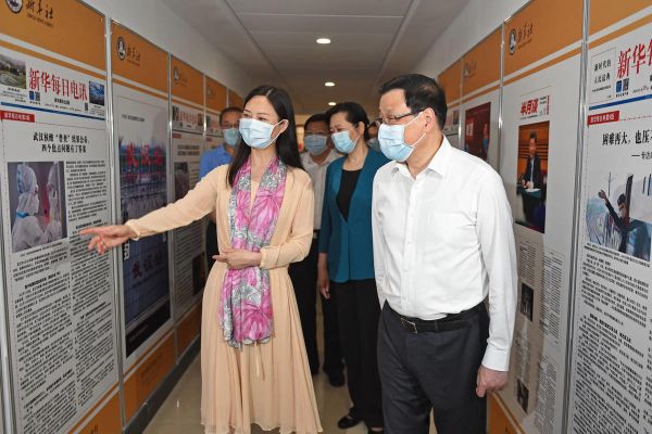 在抗疫斗争中,新华社湖北分社书写“湖北作为”、展现“湖北力量”,参与采发抗疫报道1万余篇,展现湖北干部群众打好疫情防控阻击战的努力和成效。应勇参观了新华社抗疫报道成果展、社史展、5G传播创新实验室,观看5G全息异地同屏访谈等,为大家的报道成果和辛勤付出点赞,希望继续通过形式多样的新闻报道,讲好“湖北故事”。