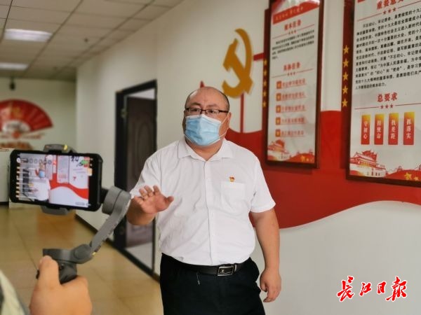 24日,在江岸区举办的微党课直播活动中,“药袋哥”再次“露面”,给网友们讲述战疫故事。