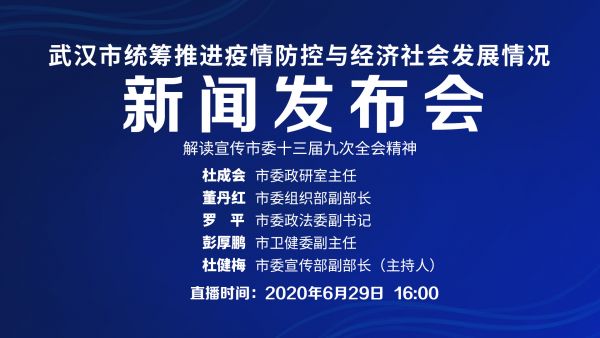 长江日报-长江网6月28日讯(记者杨荣峰)6月29日下午4点,武汉市将召开武汉市统筹推进疫情防控与经济社会发展情况新闻发布会,介绍市委十三届九次全体会议有关情况,并回答记者问。
