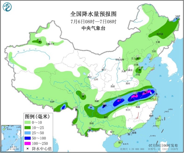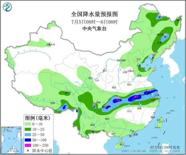 后天,江汉中南部、江淮大部、江南北部、重庆、四川南部和西部、云南东南部和西部、黑龙江中东部、吉林北部、山东西北部、西藏东南部等地有中到大雨,其中,江苏南部、浙江北部、安徽中南部、湖北南部和东部、湖南西北部、重庆南部、西藏东南部等地的部分地区有暴雨,局地大暴雨。