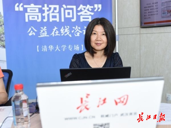 清华大学湖北招生组教师郭朝晖在上线现场。记者金思柳 摄