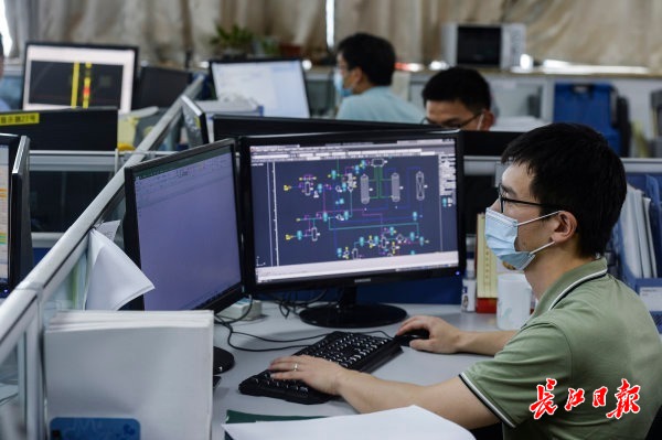 7月29日,武汉科林化工集团公司,工程设计部,设计师们正在专注工作。记者 胡冬冬 摄
