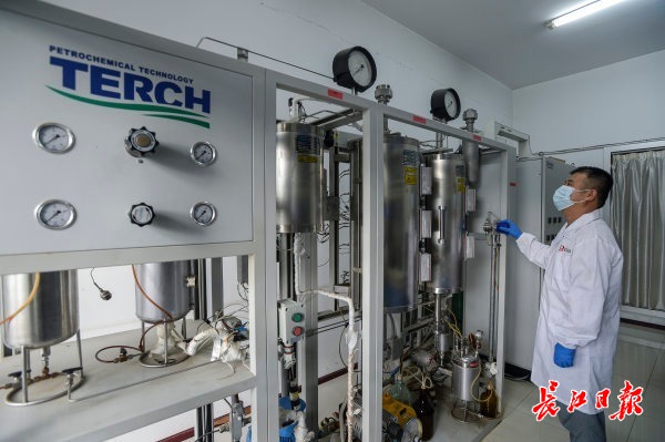 7月29日,武汉科林化工集团公司,实验人员正在使用加氢小试装置测试催化剂样品活性。记者 胡冬冬 摄