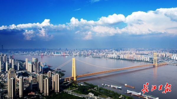 蓝天白云下的长江两岸,风光秀丽,令人神往。记者李子云 摄