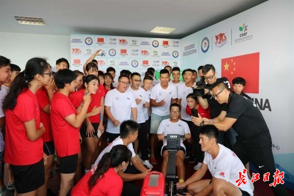 长江日报-长江网7月31日讯(记者张琳 通讯员程龙洲)7月31日,“TEAM CHINA陆上赛艇百日创纪录赛”湖北武汉站进入到第5个比赛日。上午8时50分,在全体运动员、教练员和干部职工的呐喊助威声中,最后一划的运动员王锦程发力冲刺,将测功仪的计时表定格在63小时49分44秒。一项新的世界纪录就此诞生。