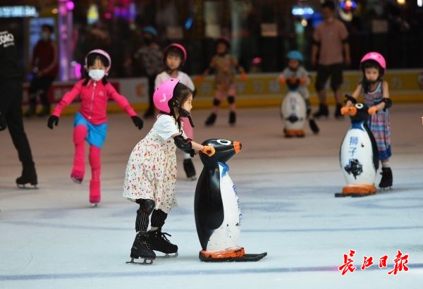 8月1日,硚口区荟聚中心吸引不少市民纳凉,溜冰场更成小孩子的乐园。记者喻志勇 摄