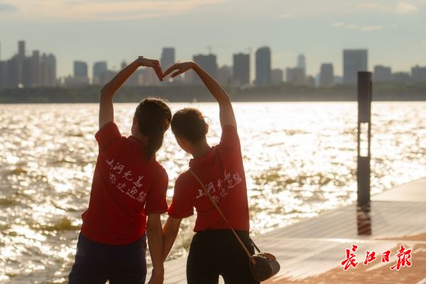 援鄂医疗队队员打卡东湖。记者胡九思 摄