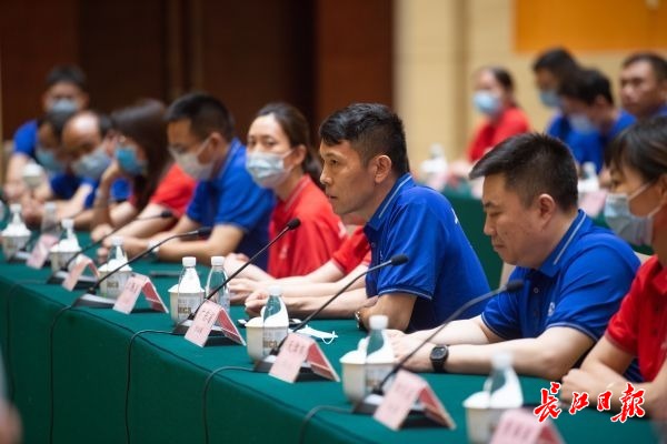 援鄂医疗代表发言,感动落泪。记者胡九思 摄