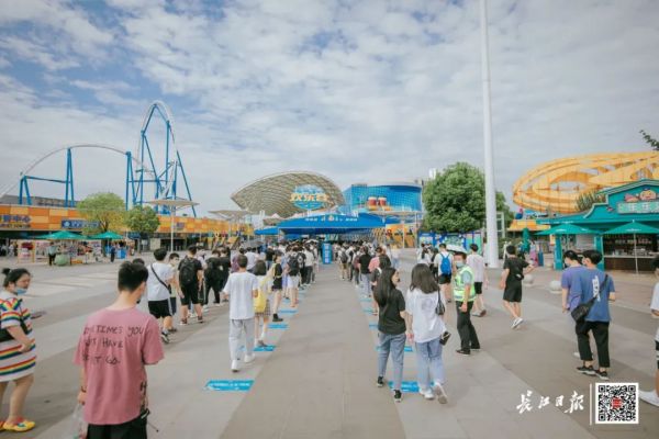 武汉欢乐谷门口,游客排队入园。记者苗剑 摄