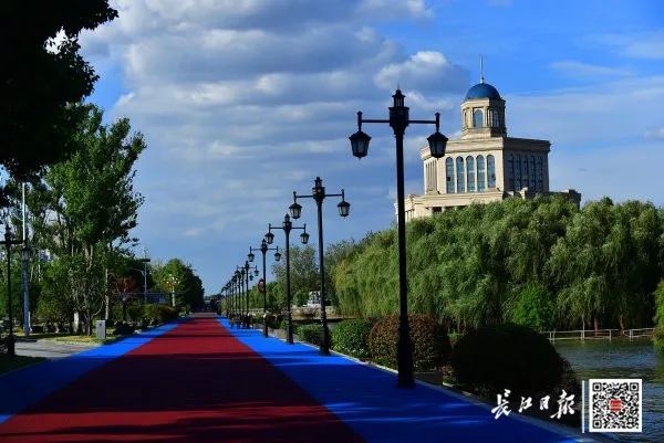 9日,临江的彩色步道冲洗一新,色彩鲜艳。记者李永刚 摄