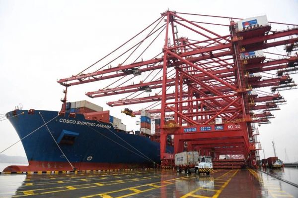 △货轮停靠在宁波舟山港梅山岛国际集装箱码头