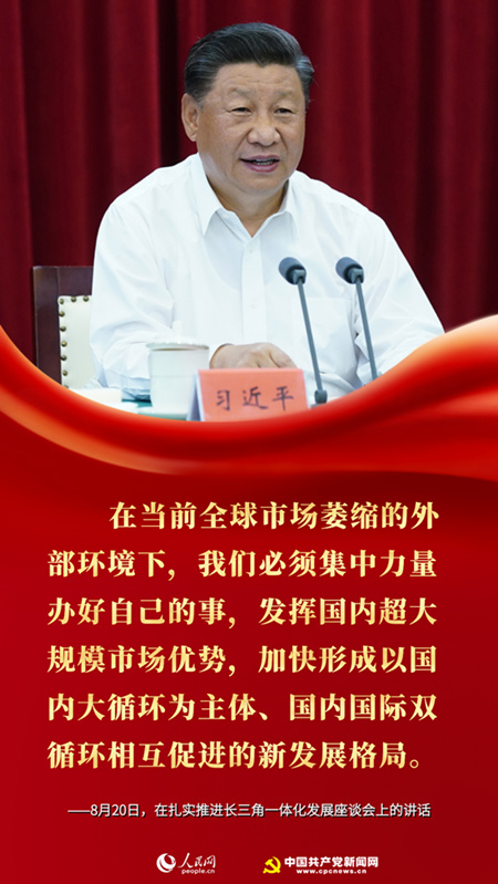 第一,率先形成新发展格局。在当前全球市场萎缩的外部环境下,我们必须集中力量办好自己的事,发挥国内超大规模市场优势,加快形成以国内大循环为主体、国内国际双循环相互促进的新发展格局。长三角区域要发挥人才富集、科技水平高、制造业发达、产业链供应链相对完备和市场潜力大等诸多优势,积极探索形成新发展格局的路径。