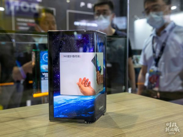 △2020国际显示技术及应用创新展7月在上海举行,这是一款柔屏手机。
