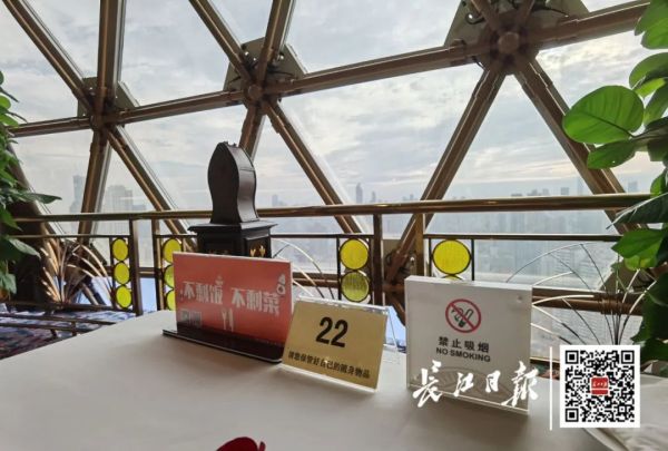 恰逢七夕,在酒店的41楼旋转餐厅,迎来了近30桌用餐的情侣。当客人前往半自助(水果、甜品等)区域取食时,服务员会友好地提醒,“尽量吃多少取多少,不要浪费哦”。