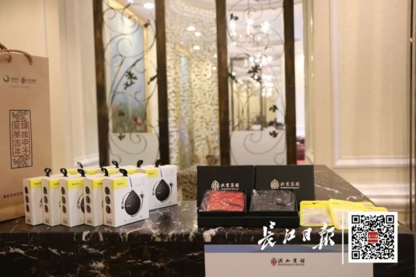 在洪山宾馆餐厅前台,摆放了不少宾馆定制的茶砖、卡包、充电线、指环扣等礼品。这些是用于奖励“光盘侠”的礼品。