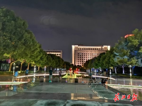 25日晚,很多市民趁着夜间气温下降到汉口江滩边休闲散步。记者龚萍 摄