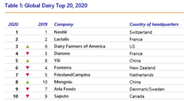 2020年全球乳品企业排名前10强。