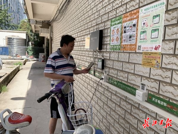 长江日报-长江网9月3日讯 插电源,扫码,开始充电计时……9月3日,居民龚志勇在小区给电动车充上电,整个操作过程不到1分钟。“这样充电很方便,再也不用飞线充电了。”他高兴地说。近日,武昌区中南路街宝通寺社区探索引进社会力量,在洪山二巷制药厂宿舍成功安装一座小型电动车智能充电站,破解老旧小区居民飞线充电治理难题。
