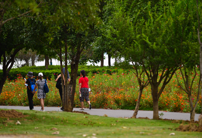 9月2日,市民在公园纳凉散步。记者李永刚 摄
