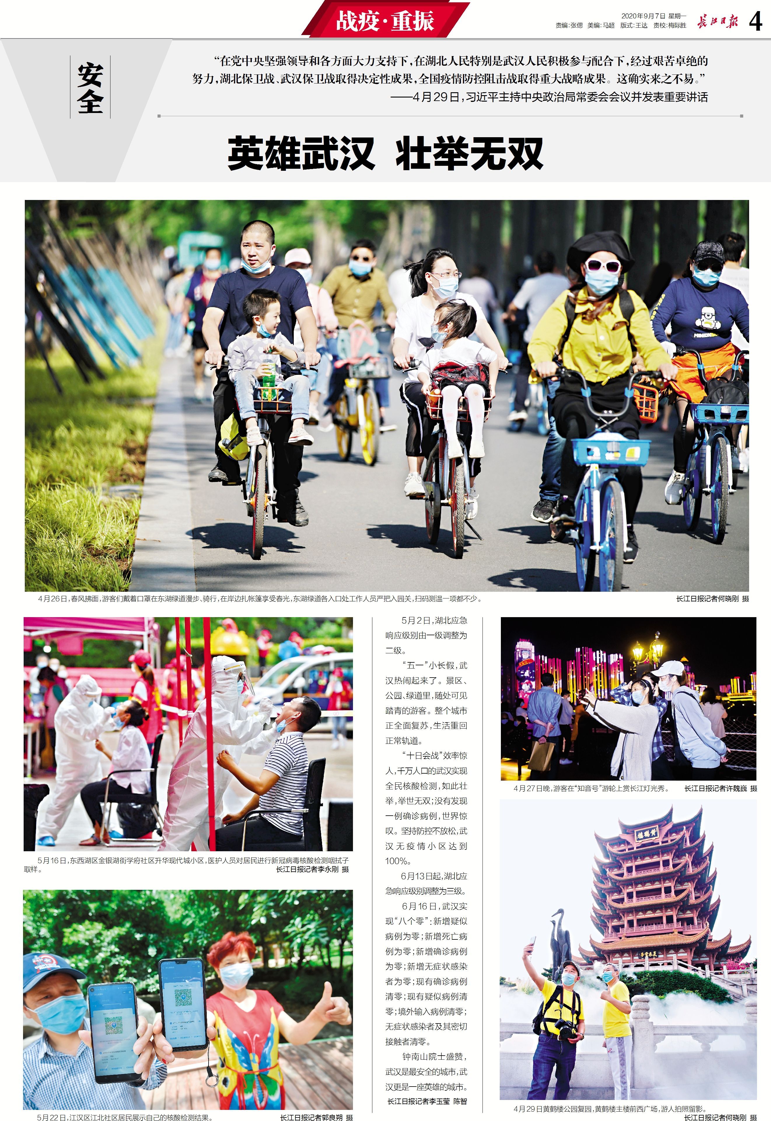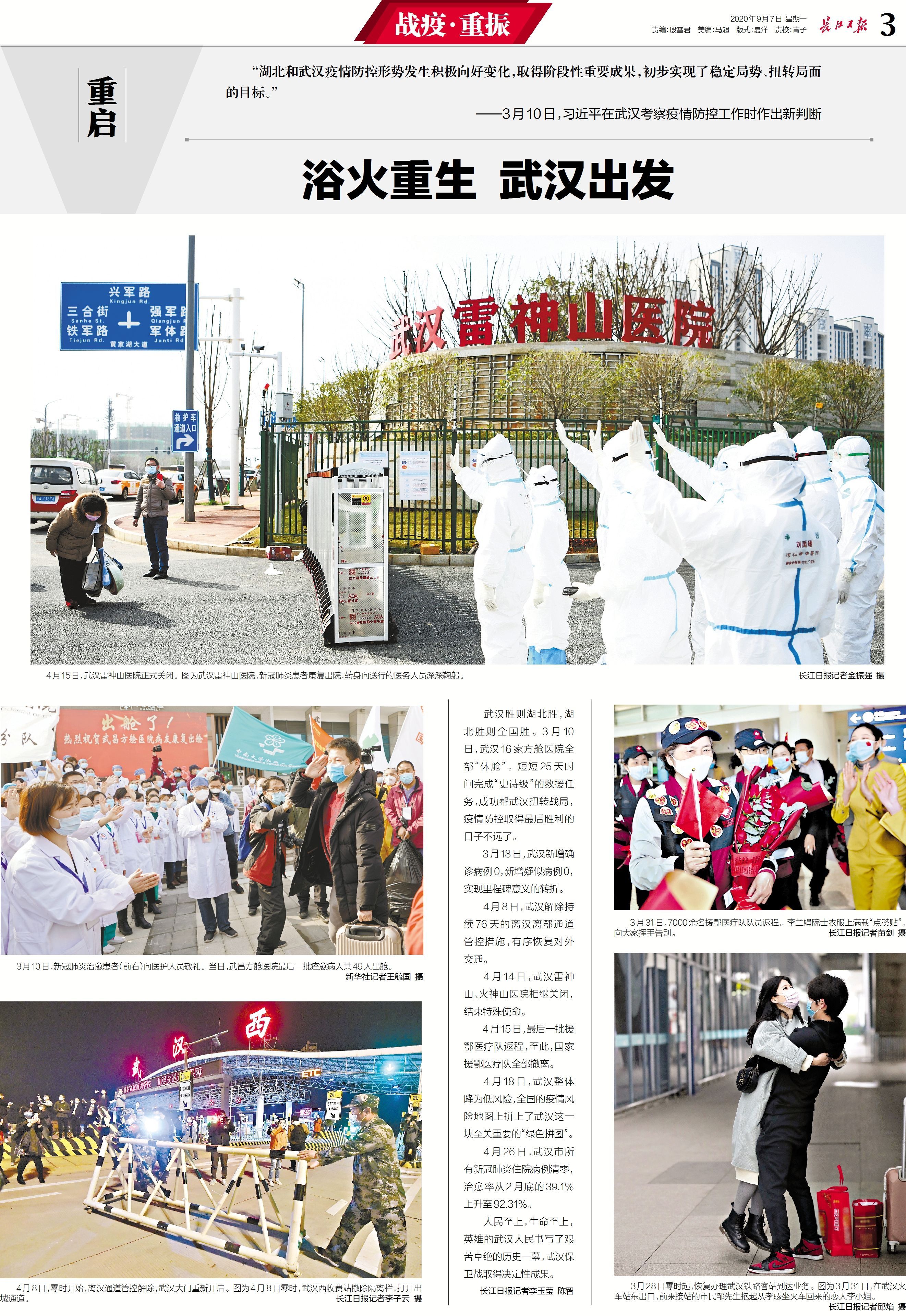 英雄之城见证中国战疫。全国疫情防控斗争,武汉是重中之重和决战决胜之地,从疫情防控到复工复产复学,全国人民和武汉人民一道,众志成城、守望相助。从长达76天的“暂停键”到大城正式重启,从迅速上升的揪心数字,正常生产生活骤然“停摆”,到武汉与全国同步高考,260万武汉学子与全国学子同步走入校园,曾是疫情“震中”的武汉走过疫情阴霾,此刻洋溢着安全健康的活力。千万人口大城经历的这一幕幕,是中国强有力战疫的缩影。