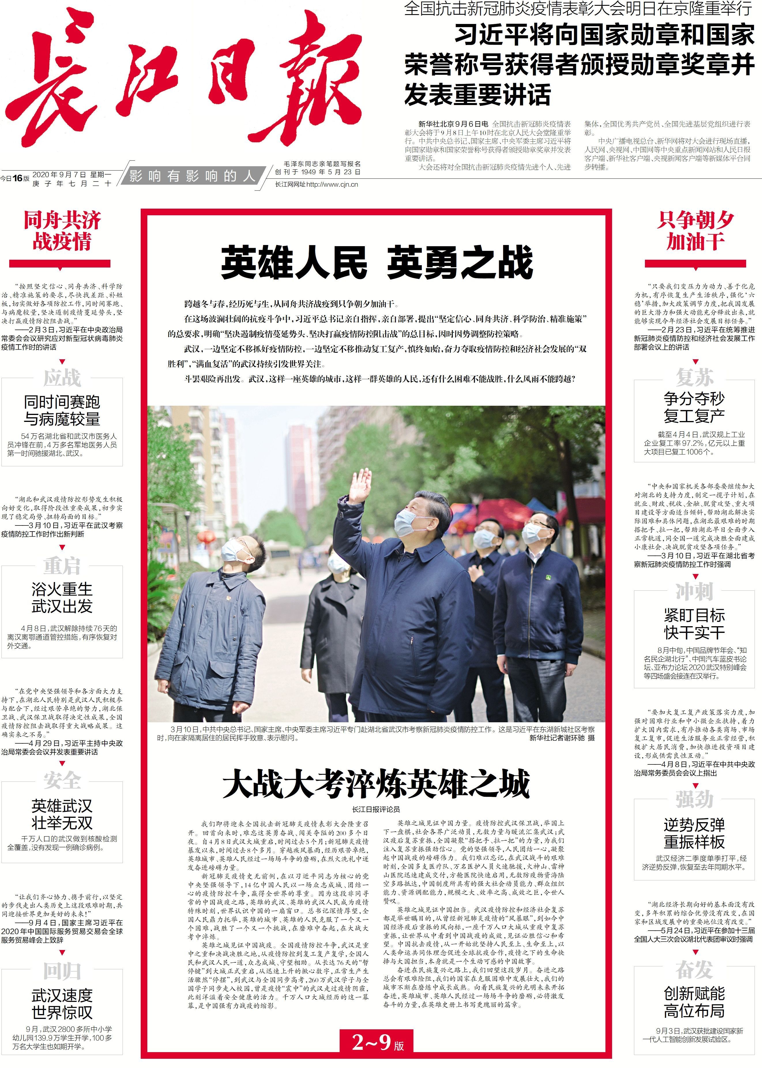 我们即将迎来全国抗击新冠肺炎疫情表彰大会隆重召开。回首向来时,难忘这英勇奋战、闯关夺隘的200多个日夜。自4月8日武汉大城重启,时间过去5个月;新冠肺炎疫情暴发以来,时间过去8个多月。穿越疾风暴雨,经历艰苦卓绝,英雄城市、英雄人民经过一场场斗争的磨砺,在烈火洗礼中迸发奋进磅礴力量。