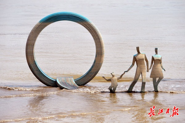 长江日报-长江网9月8日讯 8日,在汉口江滩25米亲水平台,随着江水的持续回落,标志性雕塑《美好未来》中的“三口之家”已经全部露出水面,整体造型就像踏浪归来。