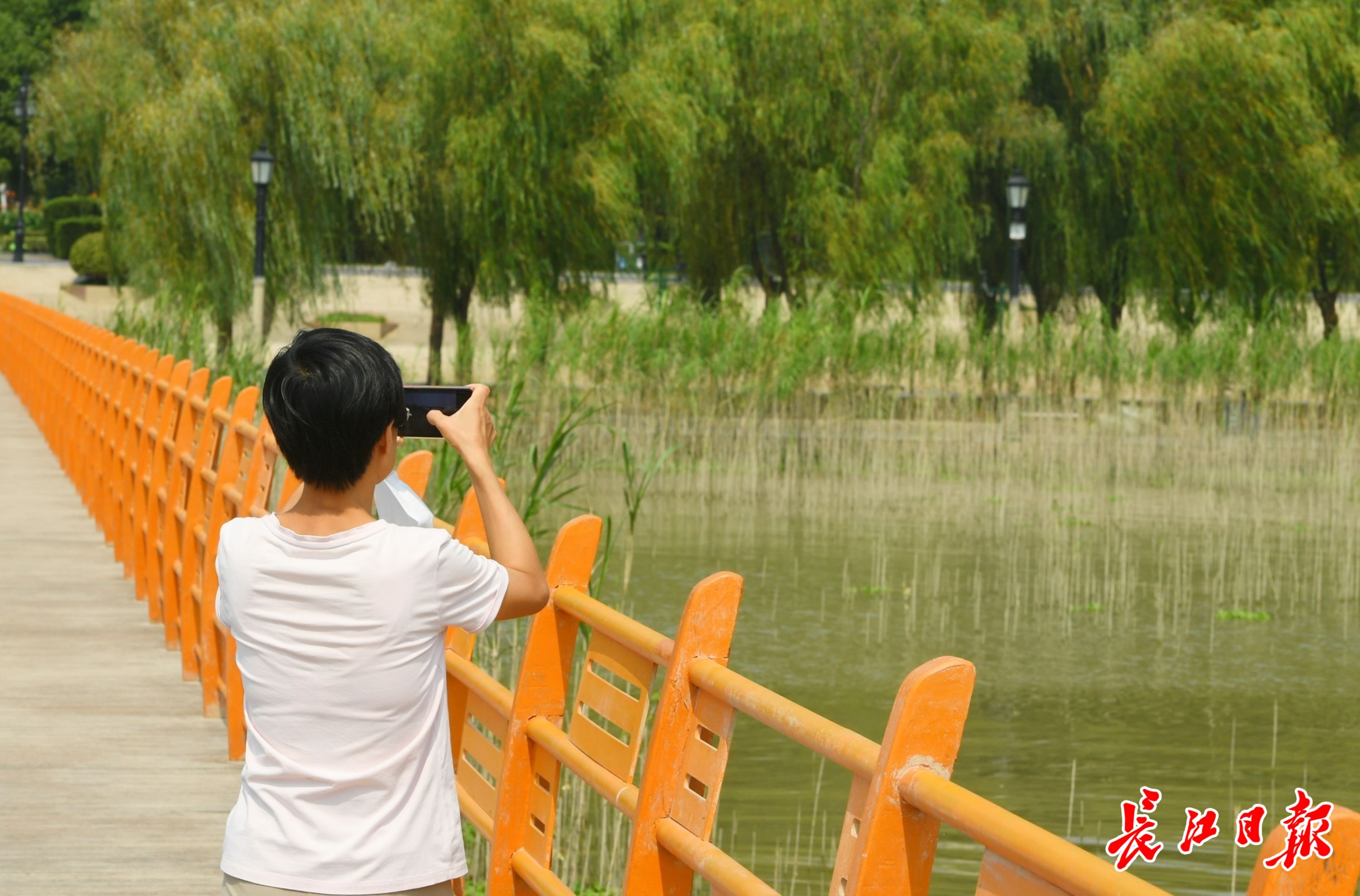 9月7日,市民在汉口江滩观芦栈道上游玩赏景。记者李子云 摄