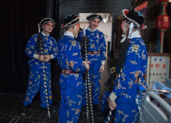 6月26日,在武汉市人民剧院,演员们在登台前准备。 新华社发