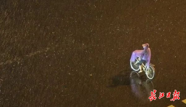 7月18日晚11时30分,武汉城区大雨滂沱,建设大道上行人穿行在风雨中。记者肖僖 摄