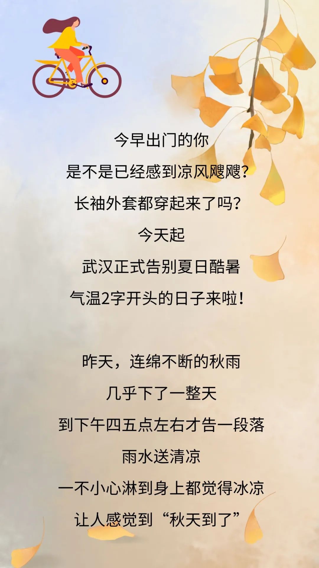 武汉天气也开始逐渐转凉