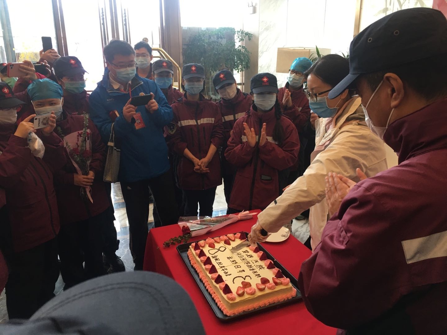 战疫期间酒店为医护人员庆祝妇女节。受访者何辉供图