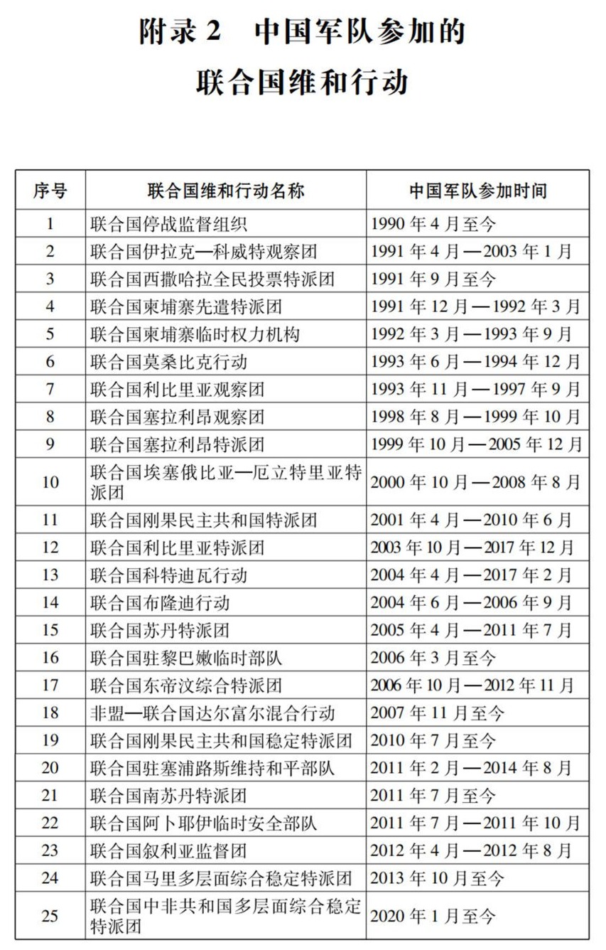 附录2 中国军队参加的联合国维和行动
