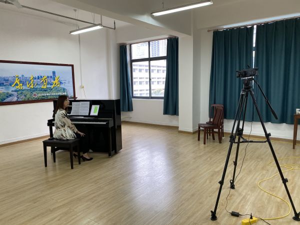 记者前往香江校区进行探访,一间直播间内正在直播乒乓球课,老师通过和1名助教学员在球台上的互动,向大家展示打球技巧,一旁的另一名助教则不断调试着直播角度。在声乐直播教室里,京韵京歌老师陈幼立正在为直播试课,陈老师不仅认真讲解了京韵京歌的有关知识,还一边拉着京胡一边现场展示了一段歌曲《我的中华》,激情高昂的歌声在教室里不断回荡。陈老师说:“直播对我是一种新的挑战,线下课程可以有互动,可是线上需要老师有充分的准备,45分钟不断往外吐出来的都是‘干货’,理顺体制后,学校对教学计划和教案要求规范严格,处处体现着按规律办学、以质量兴校的教育追求。毫不夸张地说,我的教案改了N遍”。
