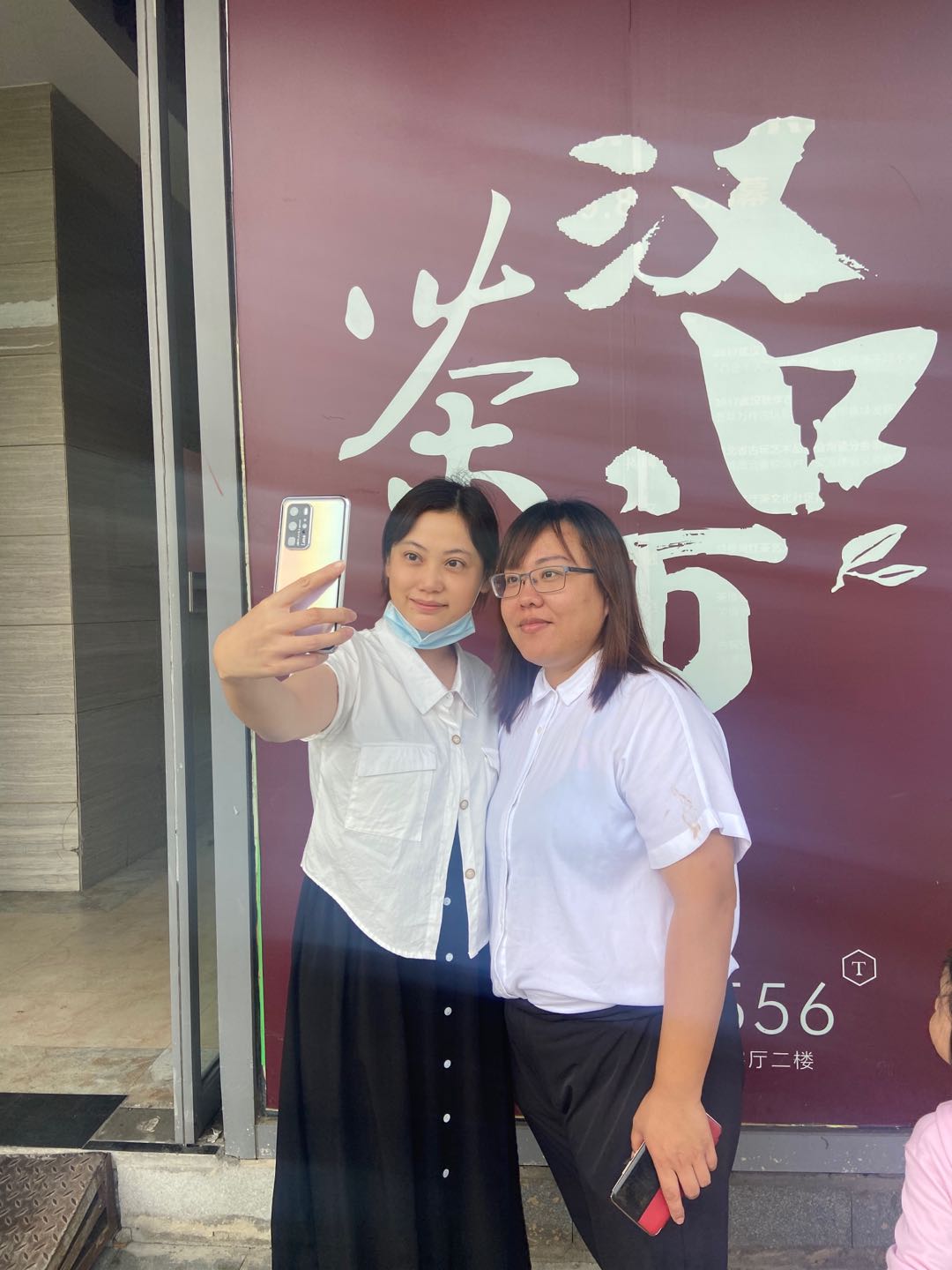 重回武汉,王朔(右)和志愿者徐莉自拍合影。
