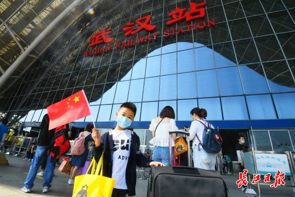10月1日,武汉火车站,出行的市民。 记者李子云 摄