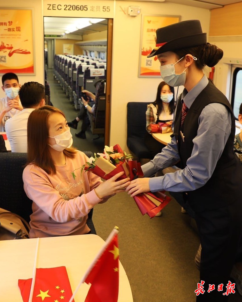 汉口、武汉、武昌等客运站在候车室等处张挂国旗、中国结、红灯笼等装饰物,营造舒适的候车环境和浓厚的节日氛围。武汉客运段在多次列车上开展了丰富多彩的联欢活动。10月1日,在汉口站D5982次列车上组织开展了“共度国庆,鲜花送给最可爱的人”主题活动。
