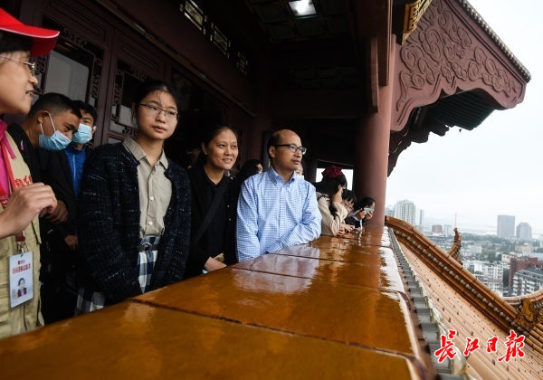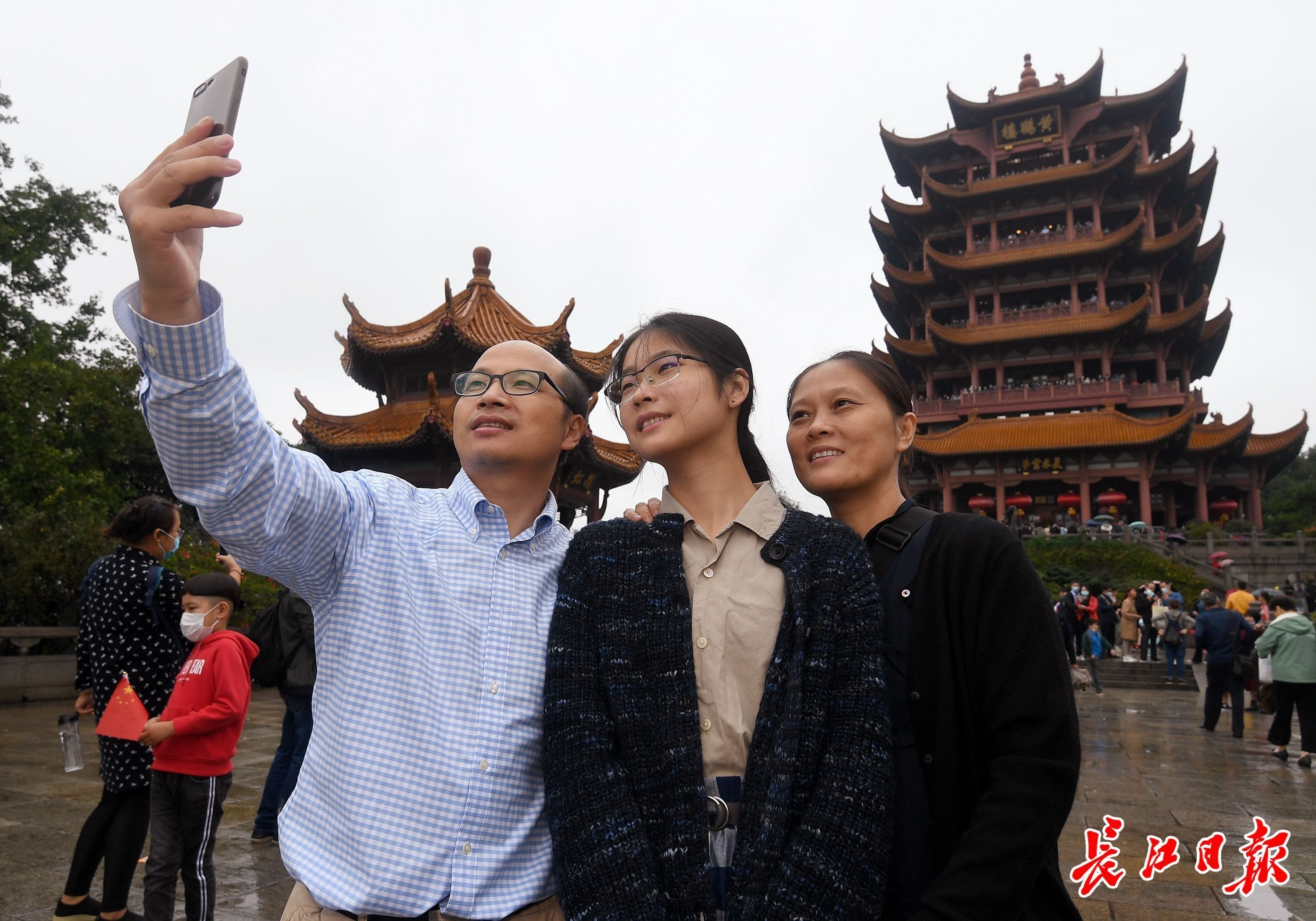 10月3日上午,上海援汉医生黄建芳与丈夫陈前,带着女儿陈石聪,登上了黄鹤楼。一个月前,女儿考入武汉大学医学部,趁着国庆假期,一家三口决定故地重游,看看武汉现在的样子。