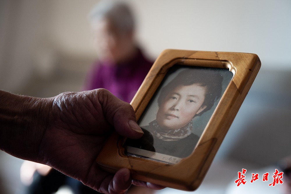 冯保会老人拿着李绍华年轻时的照片,不停夸赞老伴。记者任勇 摄