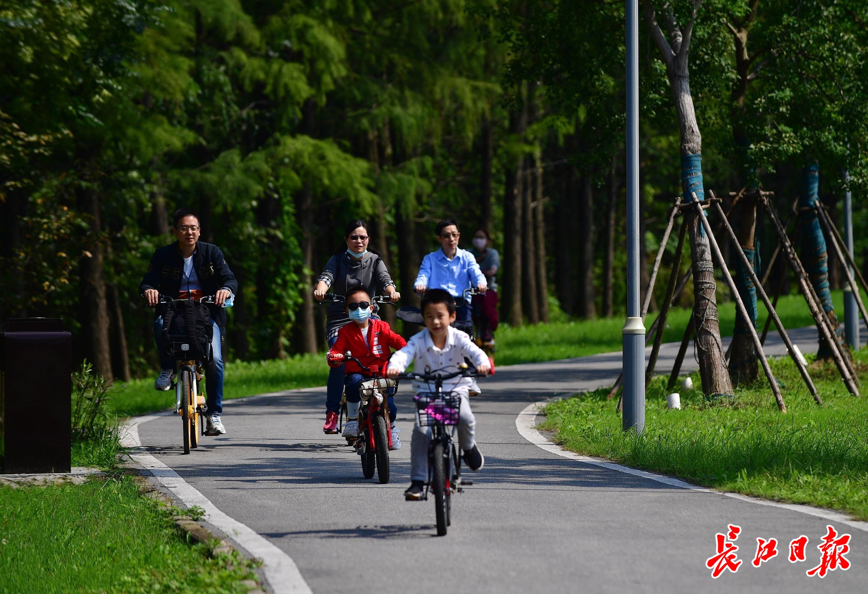 10月8日,风和日丽,秋高气爽。不少市民带着孩子来到金银湖绿道骑行。记者李永刚 摄